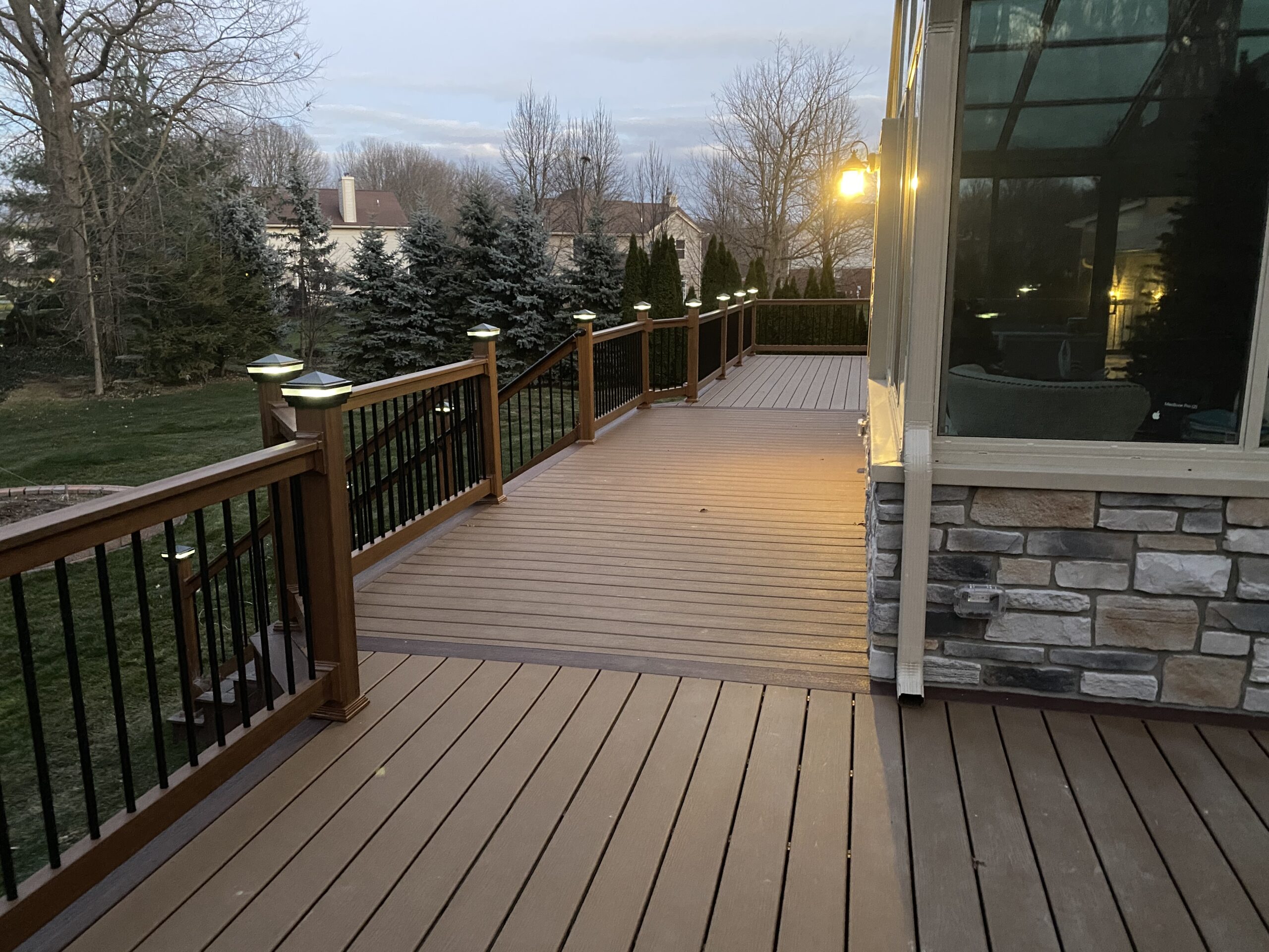 • 2. Design and Planning: Our expert team will design a deck lighting layout that maximizes your deck’s potential, incorporating Trex’s energy-efficient lighting options into your space.
